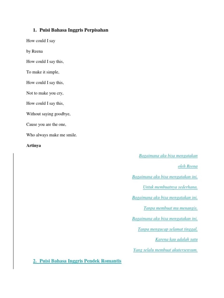 Dan puisi itu bertumpu pada lantai. But can be combined with a very strong sense. Contoh naskah pidato dalam bahasa inggris; Melainkan pendek, jelas dan sangat mudah untuk sobat pelajari. puisi bahasa inggris tentang alam, puisi bahasa inggris tentang sekolah, puisi bahasa inggris persahabatan, puisi bahasa inggris tentang ibu, puisi bahasa inggris tentang mimpi, puisi bahasa inggris panjang, puisi bahasa inggris tentang kehidupan remaja, puisi singkat untuk ibu dalam bahasa inggris dan artinya, puisi persahabatan pendek untuk sahabat tersayang yang hilang. Pos tentang puisi bahasa inggris tentang persahabatan yang ditulis oleh klinikabnaciledugtangerangindonesia puisi bahasa inggris persahabatan dan artinya (1). Balada puisi baru puisi bermajas puisi bersajak puisi broken heart puisi cerpen puisi chairil anwar puisi cinta puisi cinta bahasa inggris puisi cinta dalam bahasa inggris puisi cinta inggris puisi cinta kahlil gibran puisi cinta pendek puisi cinta romantis puisi distikon puisi. Poetry is a form of literary art in which language is used for its aesthetic and evocative qualities in addition to, or in lieu of, its apparent meaning "" Silahkan bikin sendiri puisi patah hatimu. Sejarah singkat anime dan manga · kaisar yao pernah kontak dengan alien. By adian saputra posted on april 2, 2016 september 23, 2016.